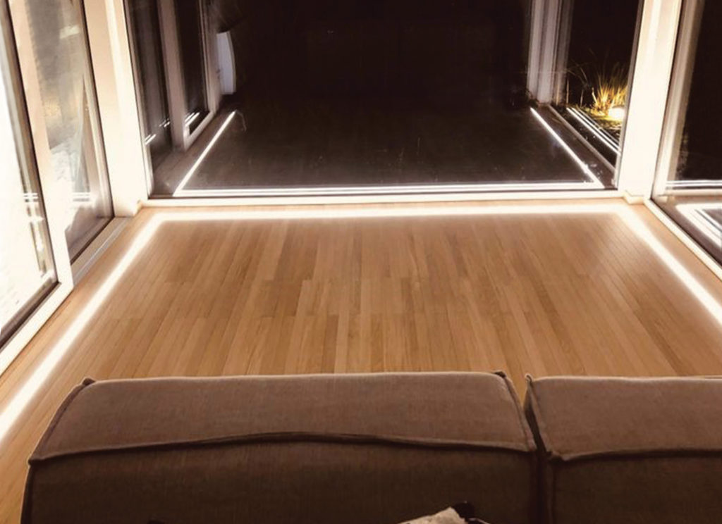 Consumi ridotti e massima praticità: ingresso con led integrati a pavimento e soffitto, sensore di movimento, regolatore automatico dell’intensità di luce (in base alla luce naturale).